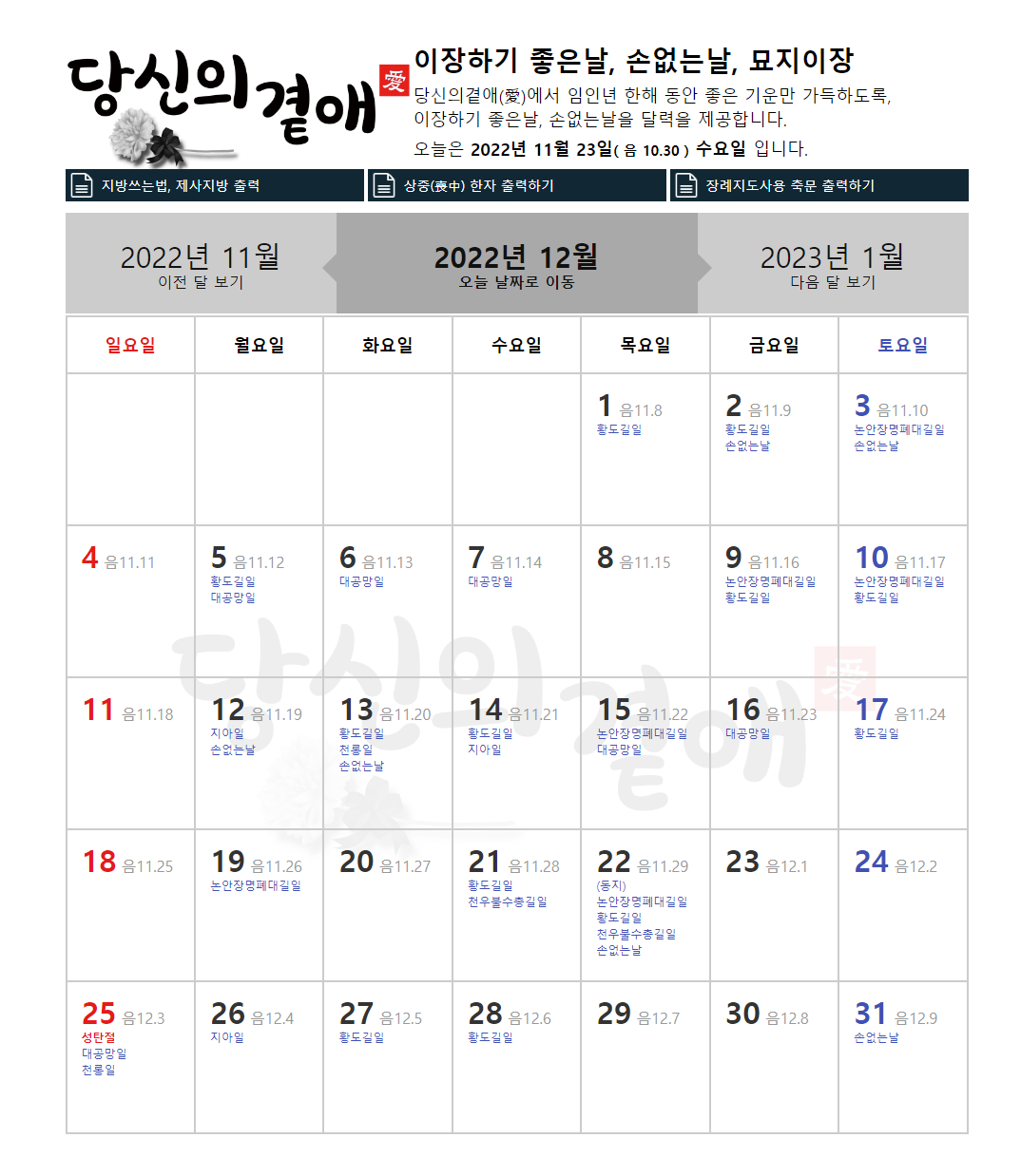 2022년 11월 12월 파묘/ 개장. 이장하기 좋은 날을 소개합니다.